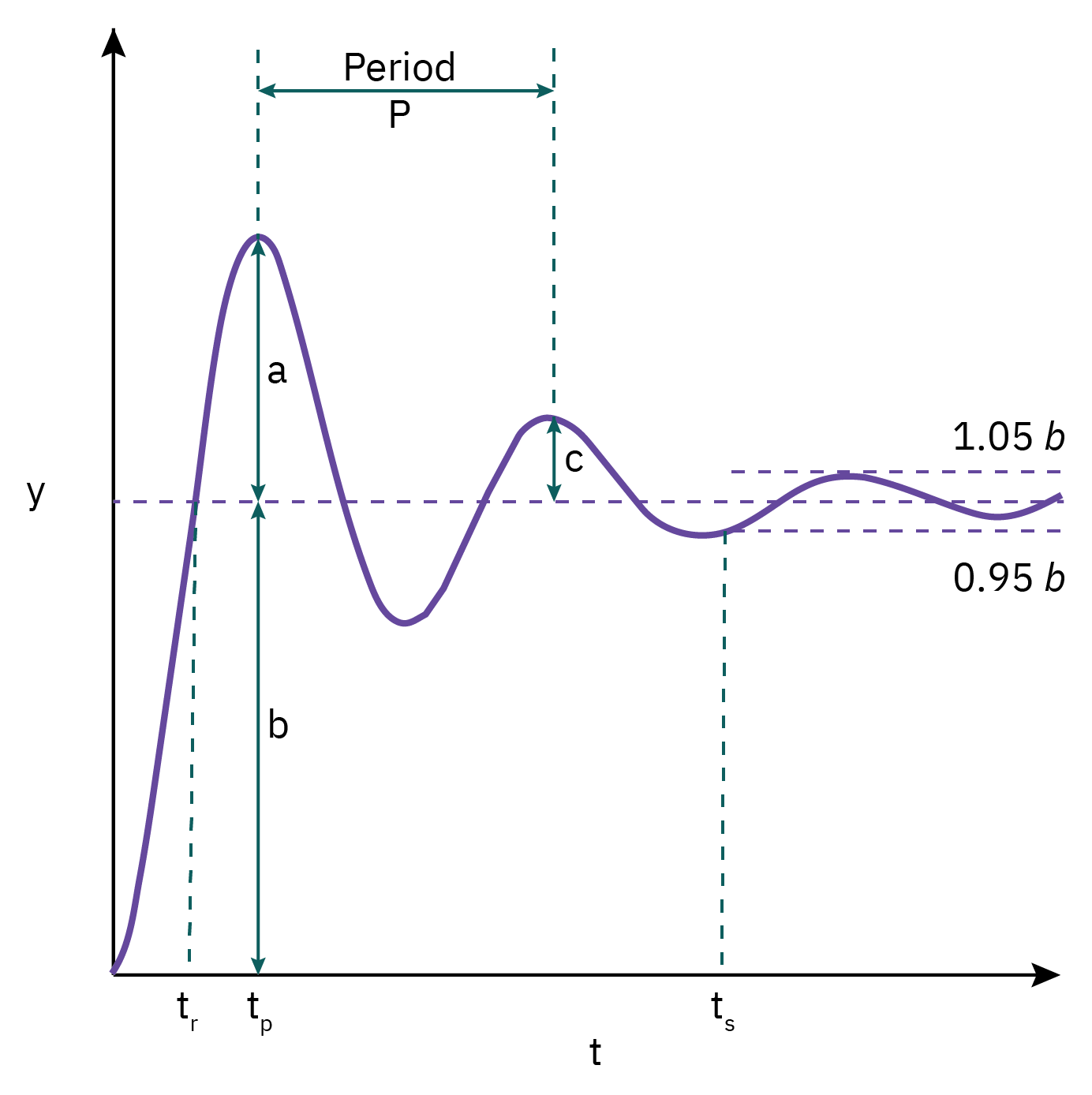 Rise time (tr): time required for y(t) to first cross its new steady state value