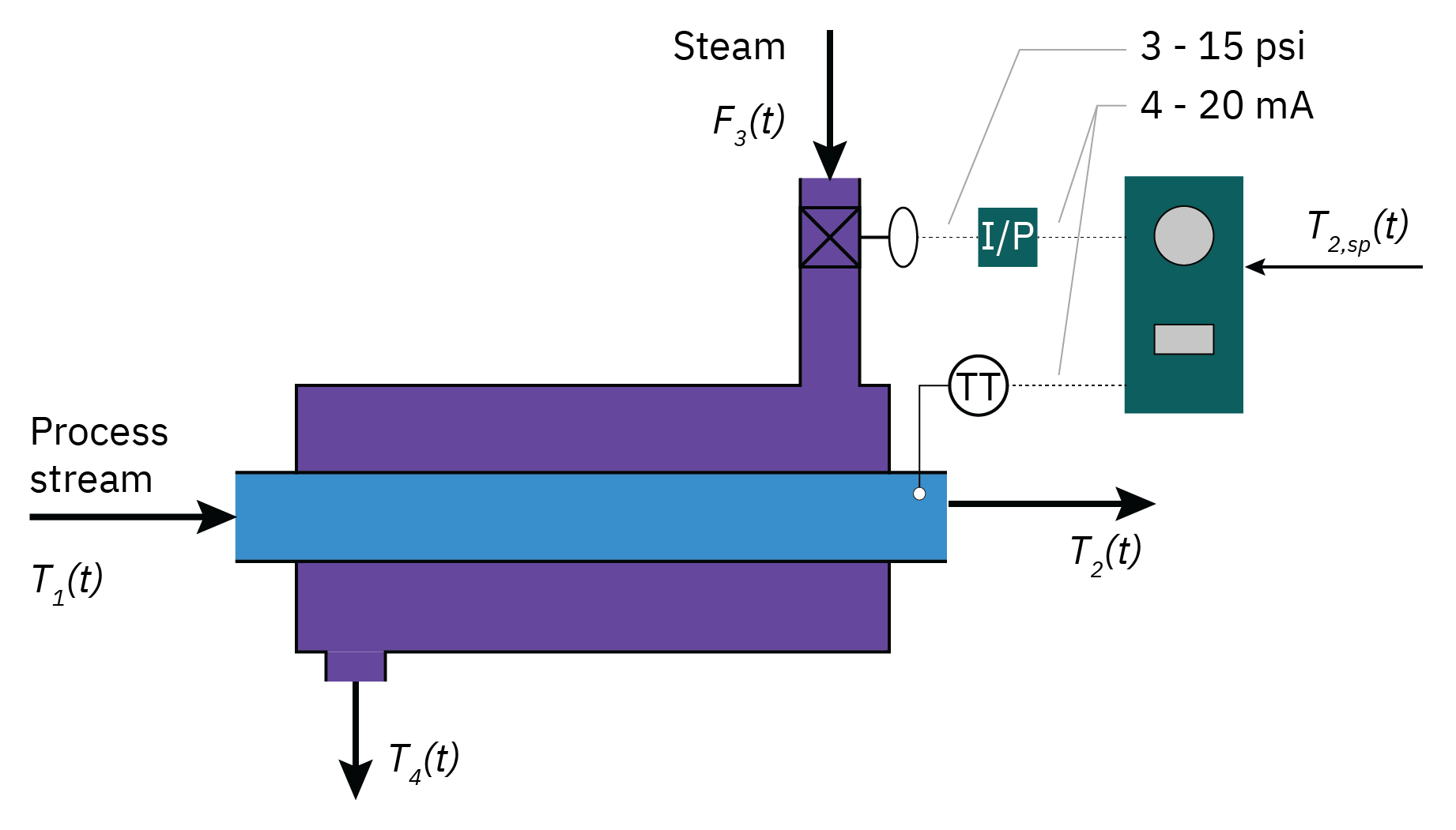 Controlled Variable (CV): Level of the liquid in the tank