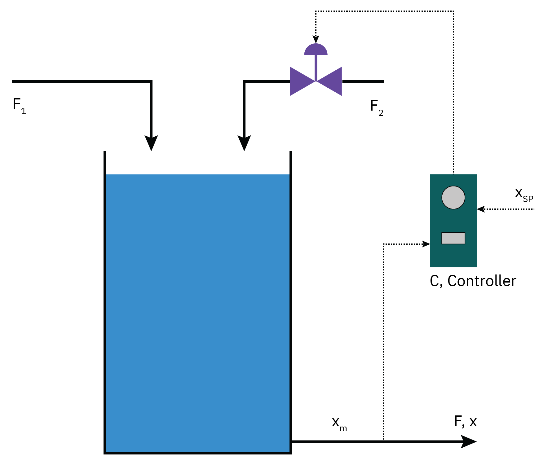 Manipulated Variable (MV): The flow rate of the liquid into or out of the tank.