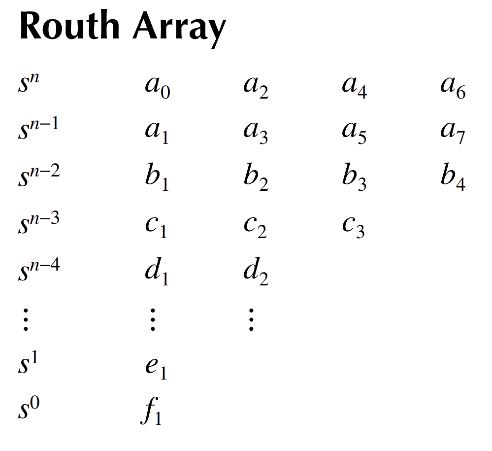 If there are sign changes in the first column, the system is unstable. The number of sign changes corresponds to the number of roots with positive real parts.