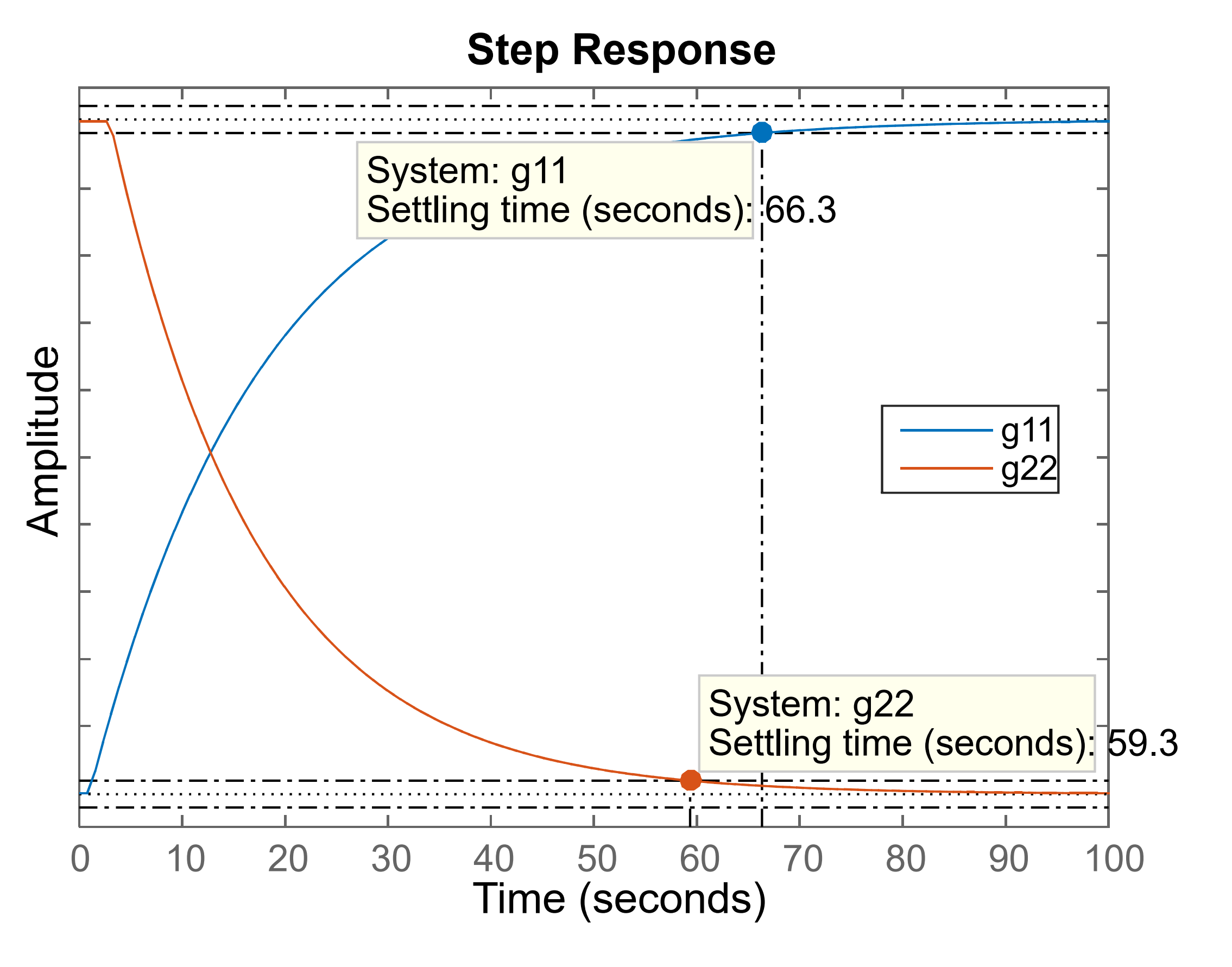 Step 1: Identify which loop is faster by comparing open-loop step responses of g11 and g22